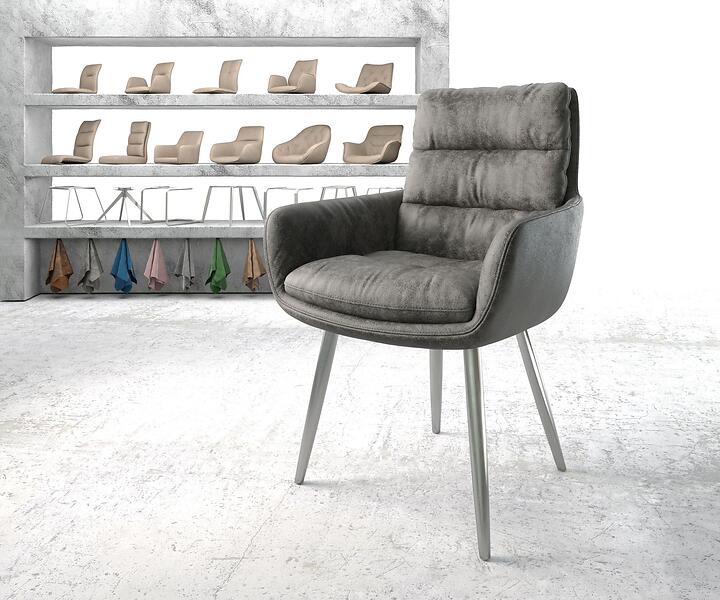 DELIFE Chaise-de-salle-à-manger Abelia-Flex avec accoudoir gris vintage 4-pieds conique acier inoxydable
