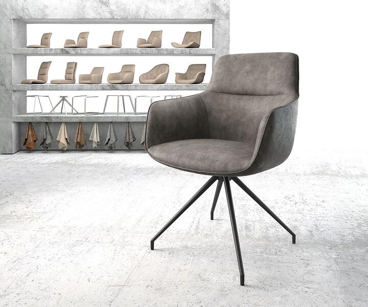 DELIFE Chaise-pivotante Pejo-Flex anthracite vintage cadre croisé conique noir
