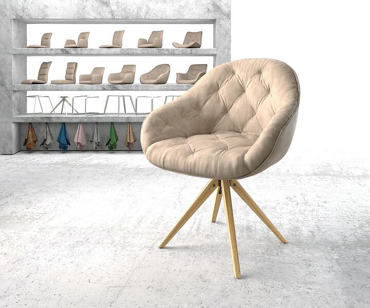 DELIFE Chaise-pivotante Gaio-Flex beige vintage microvelours cadre en bois angulaire