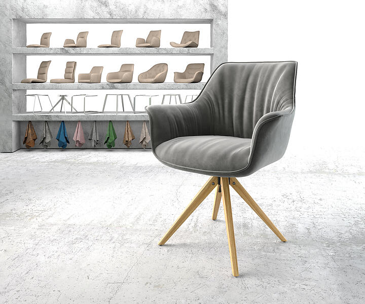 DELIFE Chaise-pivotante Keila-Flex avec accoudoir gris velours cadre en bois angulaire