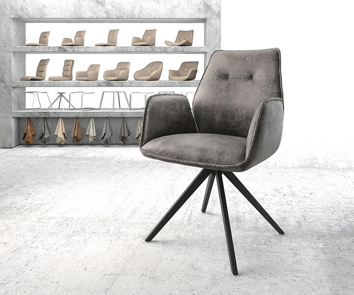 DELIFE Chaise-pivotante Zoa-Flex gris vintage cadre croisé carré noir