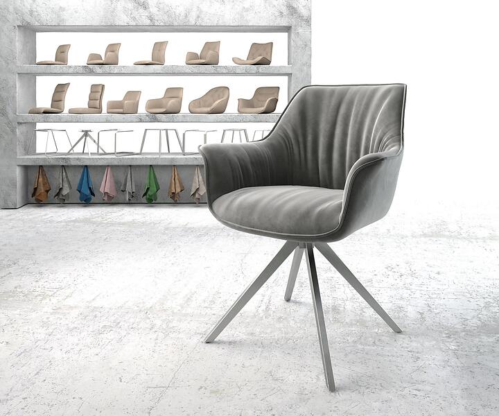 DELIFE Chaise-pivotante Keila-Flex avec accoudoir velours gris cadre croisé carré acier inoxydable