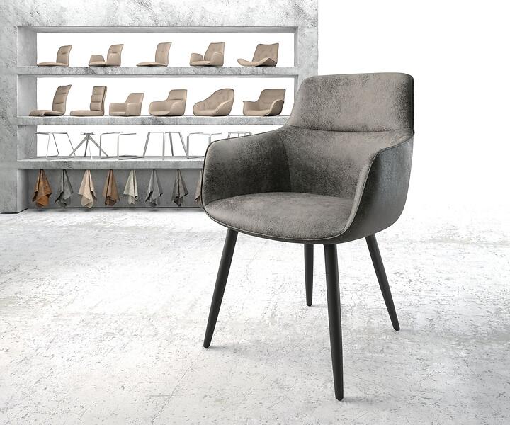 DELIFE Chaise de salle à manger Pejo-Flex gris vintage 4-pieds conique noir