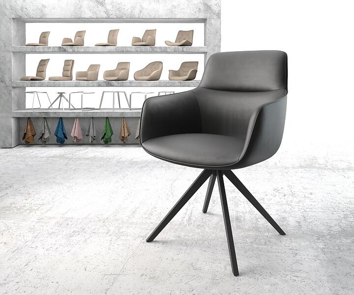 DELIFE Chaise-pivotante Pejo-Flex noir cuir véritable cadre croisé angulaire