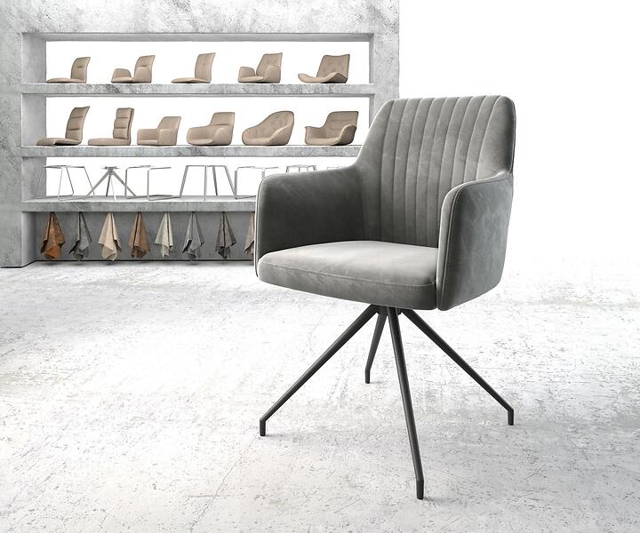 DELIFE Chaise-pivotante Greg-Flex gris velours cadre croisé conique noir