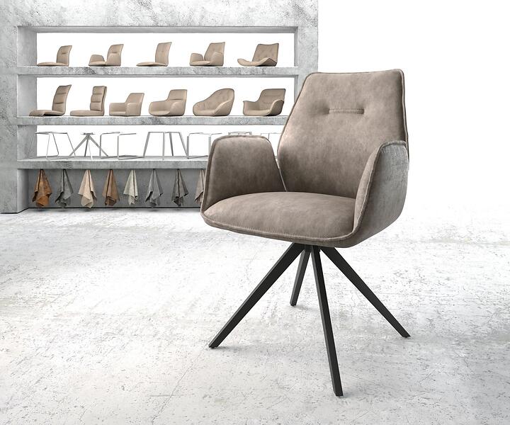 DELIFE Chaise-pivotante Zoa-Flex taupe vintage cadre croisé carré noir