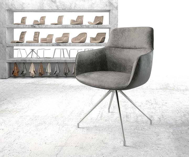 DELIFE Chaise-pivotante Pejo-Flex gris vintage cadre croisé conique acier inoxydable