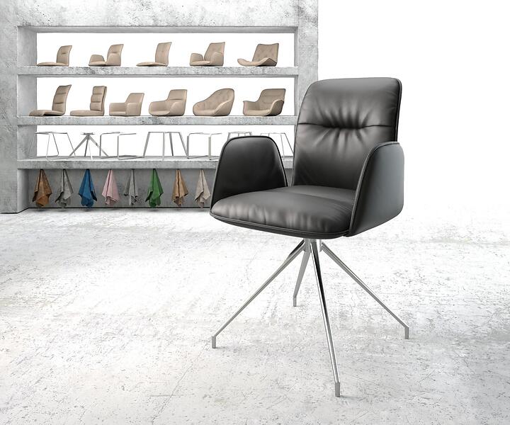 DELIFE Chaise-pivotante Vinja-Flex noir cuir véritable cadre croisé conique acier inoxydable