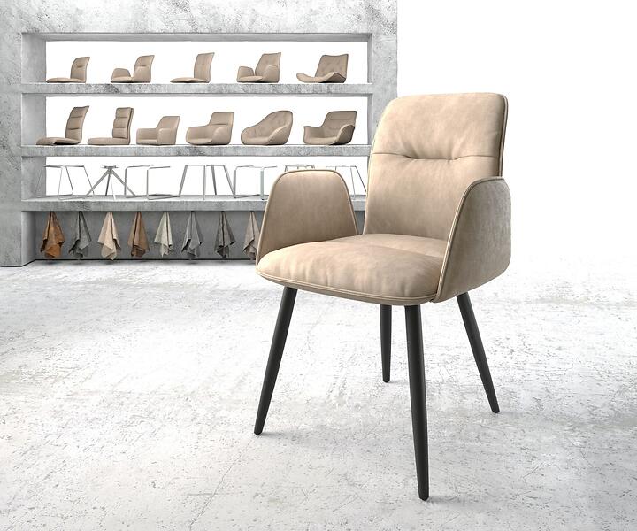 DELIFE Fauteuil Vinja-Flex beige vintage 4-pieds conique noir