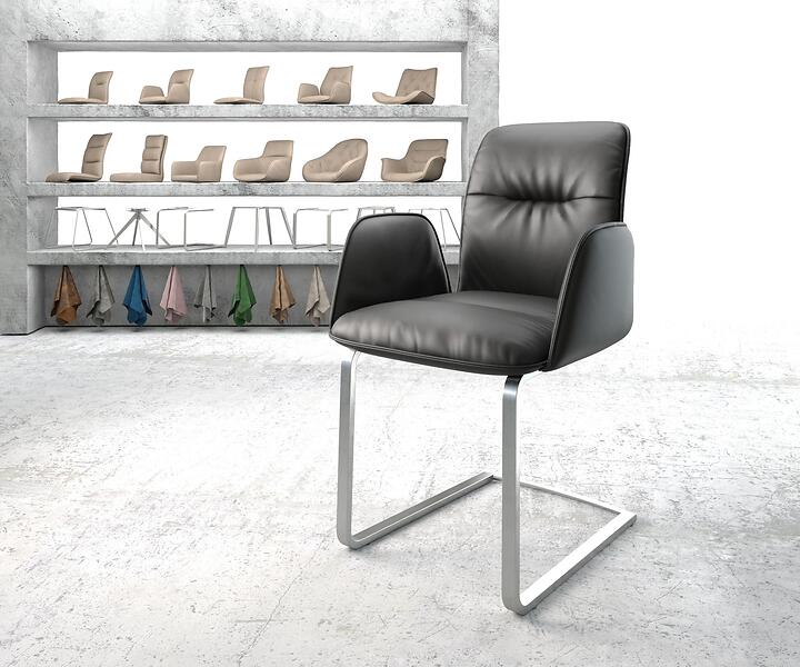 DELIFE Fauteuil Vinja-Flex noir cuir véritable cantilever plat acier inoxydable