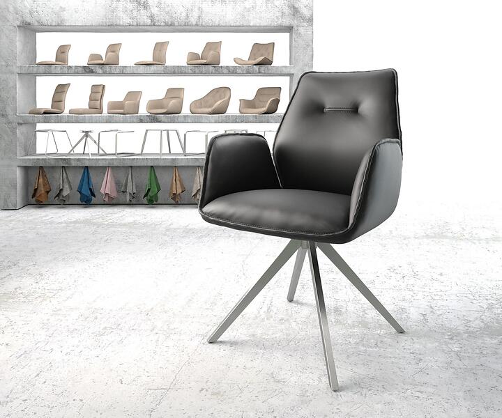 DELIFE Chaise-pivotante Zoa-Flex noir cuir véritable cadre croisé angulaire acier inoxydable