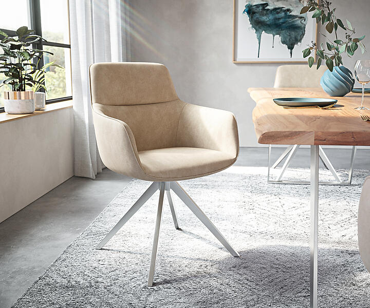 DELIFE Chaise-pivotante Pejo-Flex beige vintage cadre croisé carré acier inoxydable