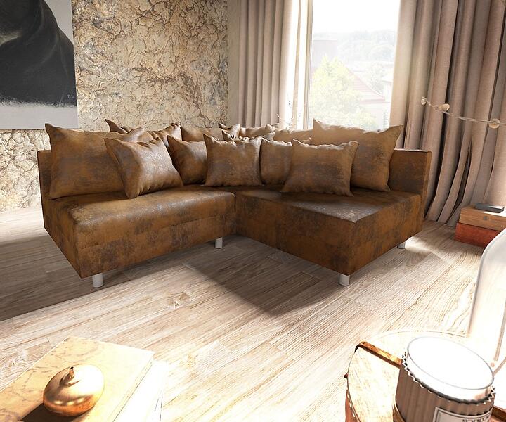 DELIFE Canapé-d"'angle Clovis marron aspect antique ottoman droite canapé modulaire