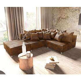 DELIFE Canapé d"'angle Clovis tabouret marron aspect antique ottoman gauche canapé module