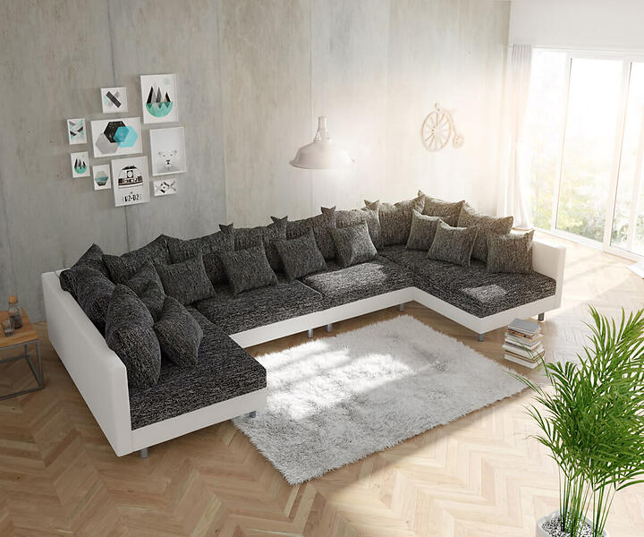 DELIFE Canapé Clovis XL blanc noir modulaire