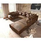 DELIFE Canapé-panoramique Clovis marron look antique Tabouret modulable avec accoudoirs