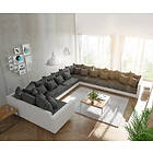 DELIFE Canapé Clovis XXL blanc noir avec accoudoir ottoman droit