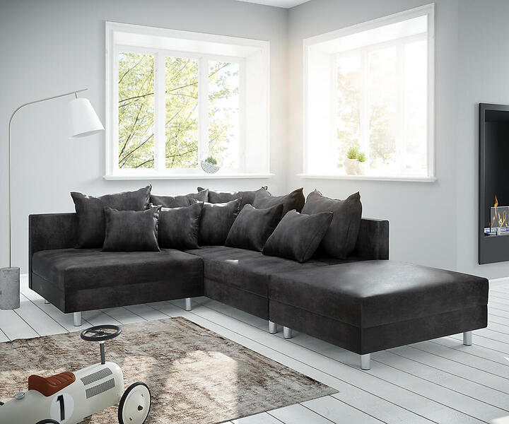 DELIFE Canapé Clovis anthracite antique optique tabouret ottoman droit