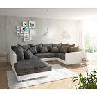 DELIFE Canapé panoramqiue Clovis blanc noir avec tabouret et accoudoirs