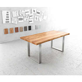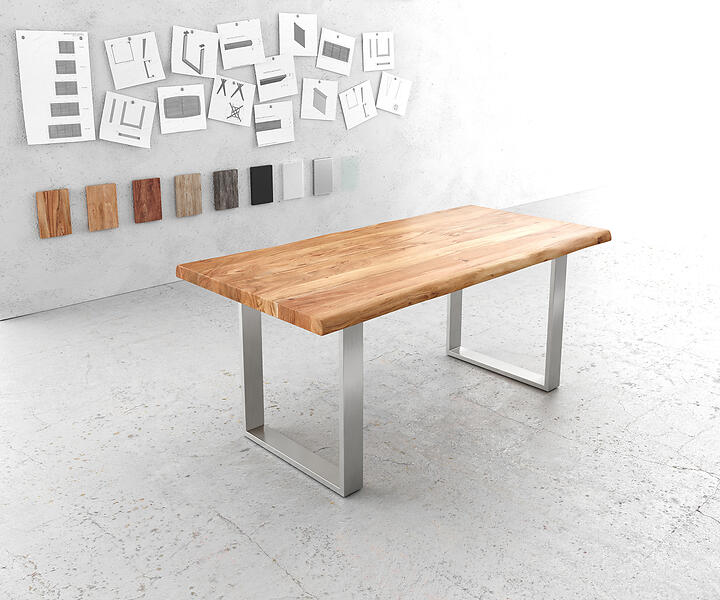DELIFE Table-à-manger Edge 180x90 XL acacia nature acier inoxydable mince Live-Edge