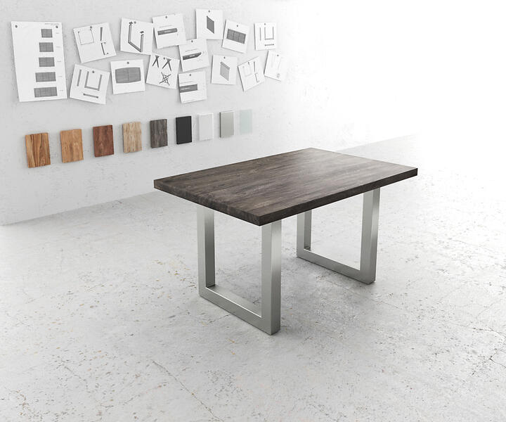 DELIFE Table-à-manger Edge 140x90 XL acacia platine acier inoxydable large