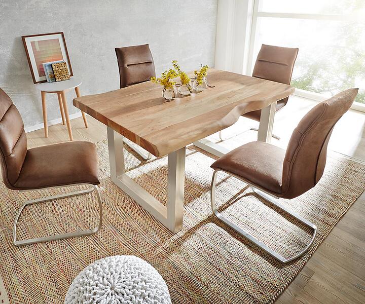 DELIFE Table-à-manger Edge 140x90 XL acacia nature acier inoxydable large Live-Edge