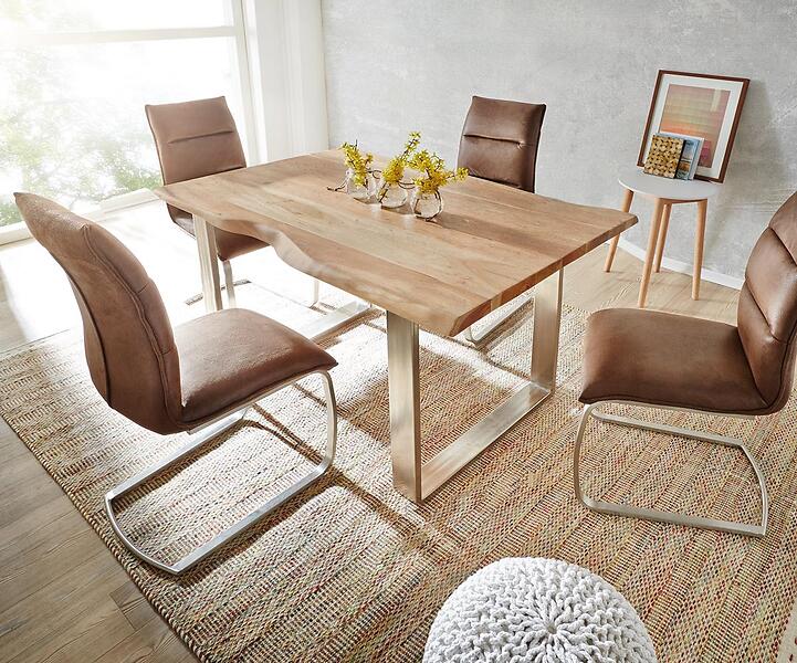 DELIFE Table-à-manger Edge 200x100 acacia nature acier inoxydable mince Live-Edge