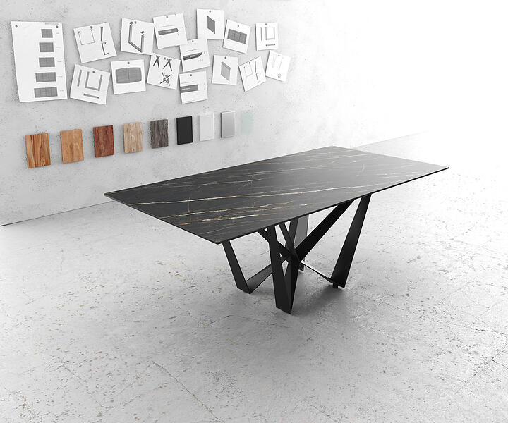 DELIFE Table-à-manger Edge 200x100cm Laminam céramique marron pieds milieu acier plat noir