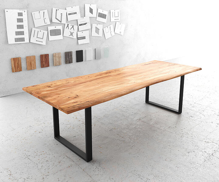 DELIFE Table de salle à manger Edge 260x100 acacia naturel métal noir Live-Edge
