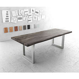 DELIFE Table-à-manger Edge 240x100cm XL acacia platine acier inoxydable large Live-Edge
