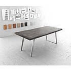 DELIFE Table-à-manger Edge 200x100cm XL acacia platine acier inoxydable argent incliné Live-Edge
