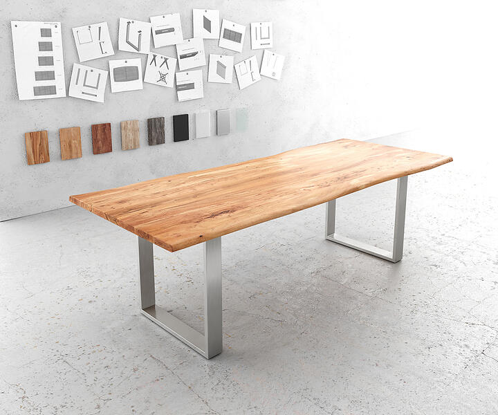 DELIFE Table-à-manger Edge 240x100cm acacia nature acier inoxydable mince Live-Edge