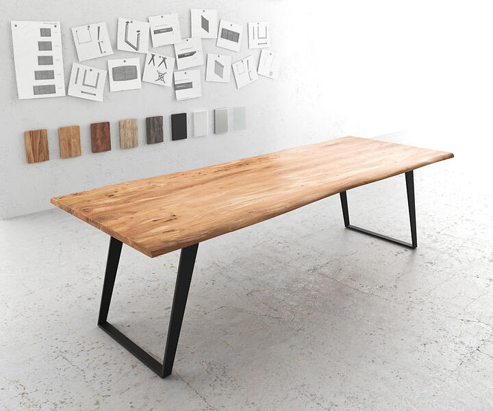 DELIFE Table-à-manger Edge 260x100 acacia nature métal incliné Live-Edge