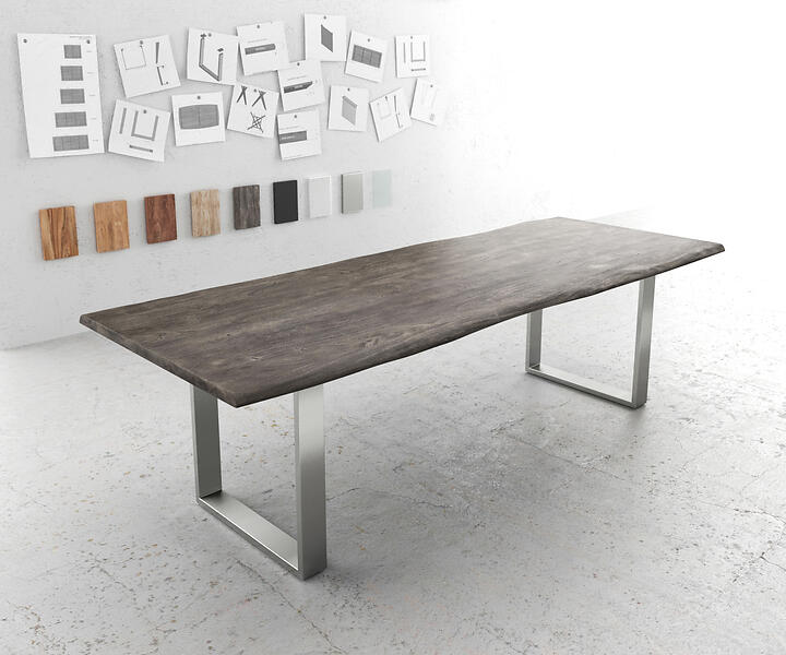DELIFE Table-à-manger Edge 260x100 acacia platine acier inoxydable mince Live-Edge