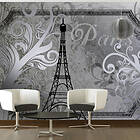Artgeist Fototapet Vintage Paris med Eiffeltornets illustration och grafiskt mönster i silverlook (flera storlekar) 100x70