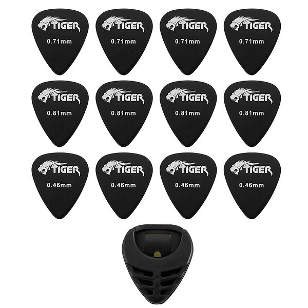 Tiger Pack of 12 Guitar Picks & Pick Holder Variety Gauges