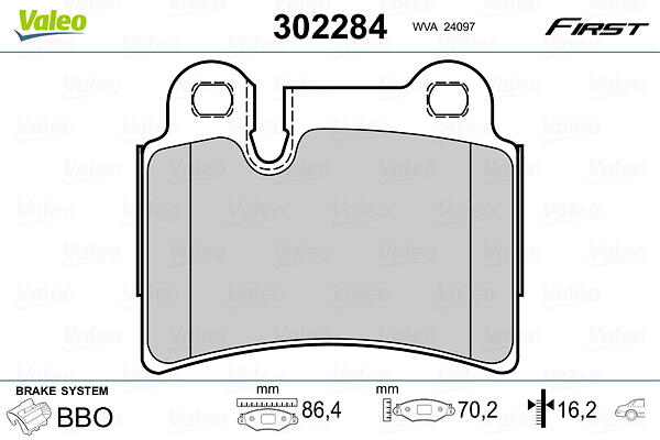 Valeo Jeu de plaquettes de frein, frein à disque 302284