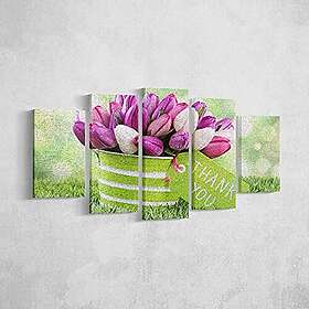 Homemania blomster-5 natur-för vardagsrum, rum-flerfärgad, 100 X 3 X 60cm-HM205PKNV-276, polyester, trä