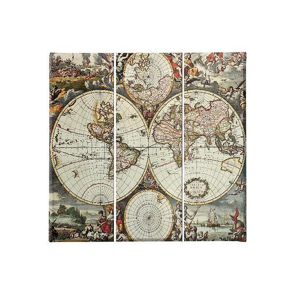 Homemania World Framework 3 Pieces Map for Living Room, Bedroom Multicolor made of Polyester, Wood, 69 x 3 x 50 cm,