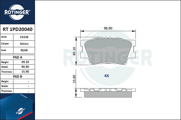 Rotinger Bromsbeläggssats, skivbroms RT 1PD20040