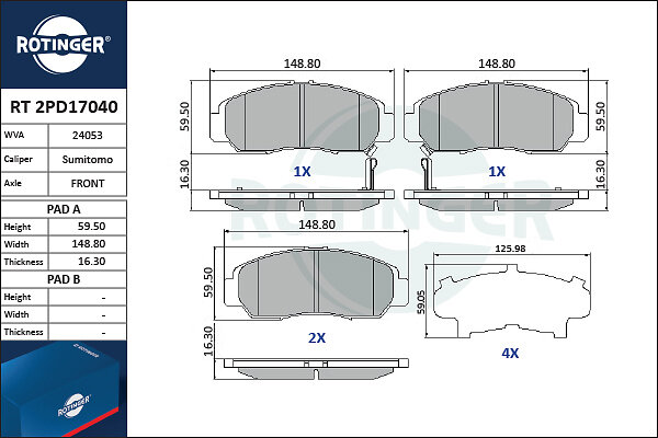 Rotinger Bromsbeläggssats, skivbroms RT 2PD17040