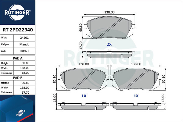 Rotinger Bromsbeläggssats, skivbroms RT 2PD22940