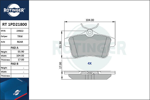 Rotinger Bromsbeläggssats, skivbroms RT 1PD21800