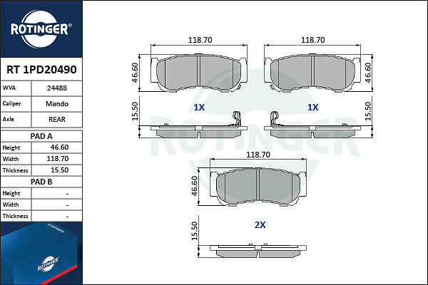 Rotinger Bromsbeläggssats, skivbroms RT 1PD20490