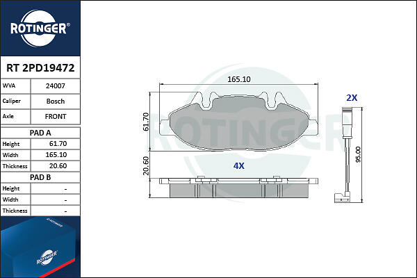 Rotinger Bromsbeläggssats, skivbroms RT 2PD19472