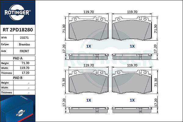 Rotinger Bromsbeläggssats, skivbroms RT 2PD18280