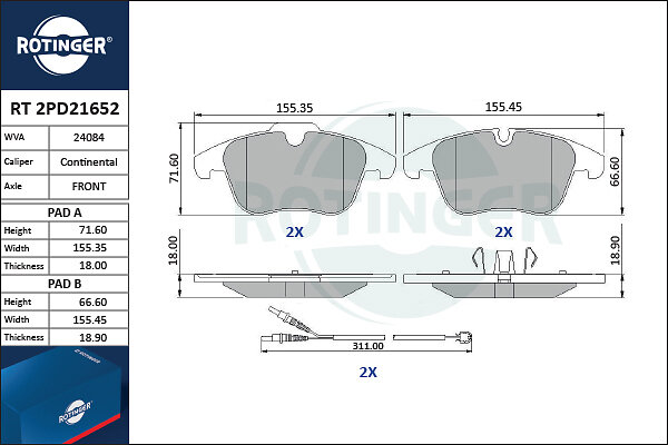 Rotinger Bromsbeläggssats, skivbroms RT 2PD21652
