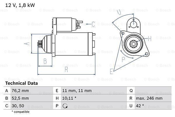 Bosch Startmotor 0 986 016 980