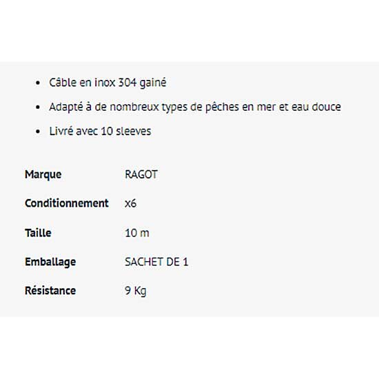 Le meilleur prix pour Ragot Wire 10 M Steel Line Durchsichtig 9 Kg est actuellement de 15,83 €. leDénicheur compare les promos et les offres de marchands en ligne.