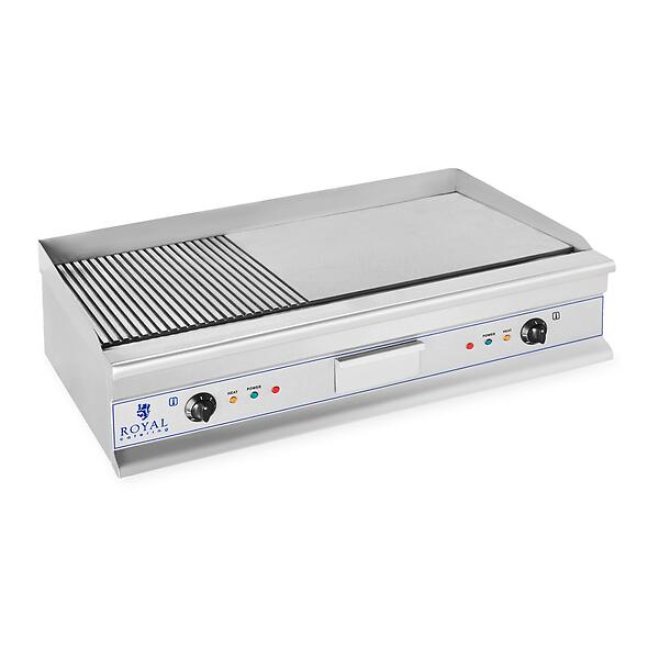 Royal Catering Elektriskt Stekbord - Dubbelt 100cm 2 x 3200W (Slät/Räfflad)